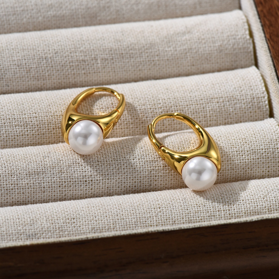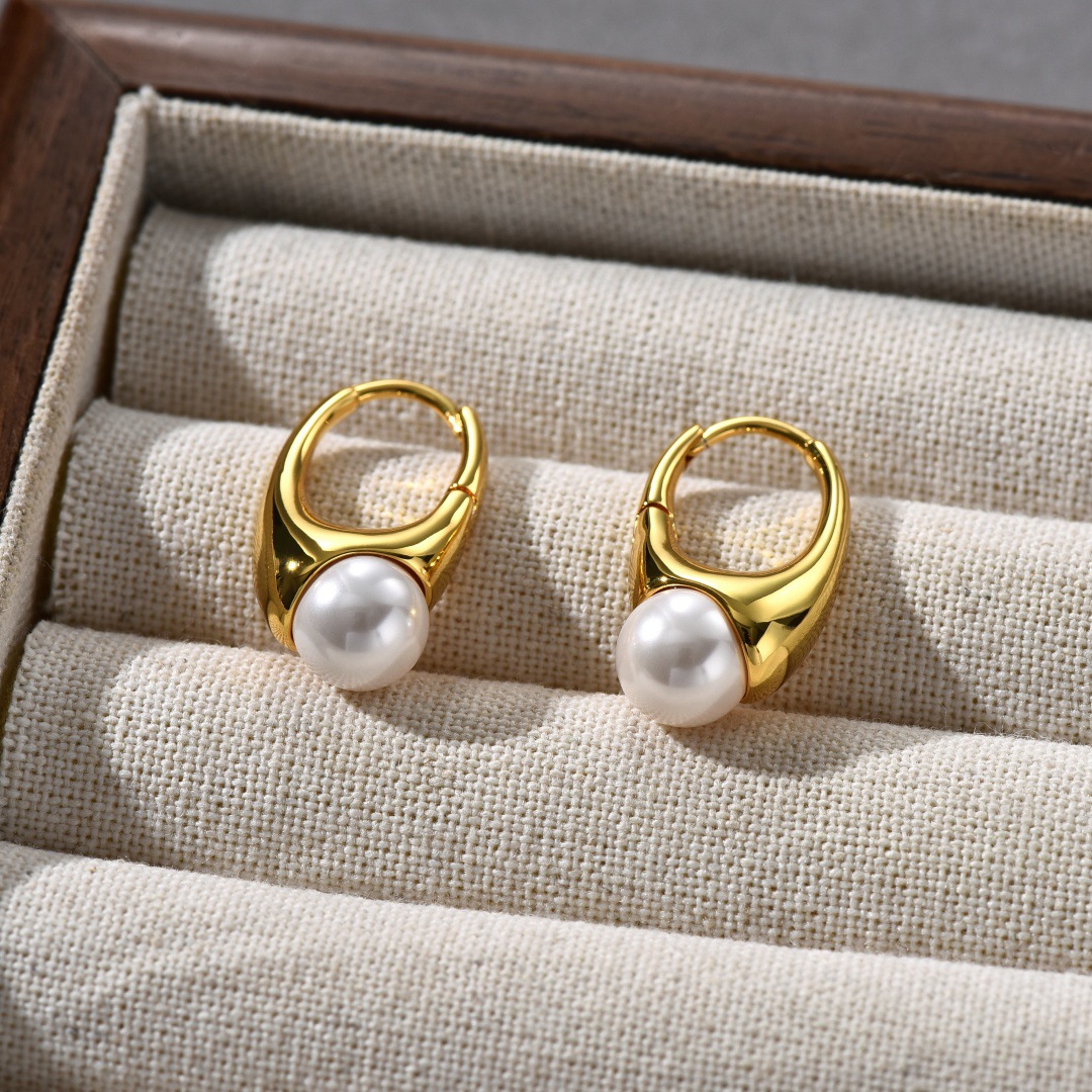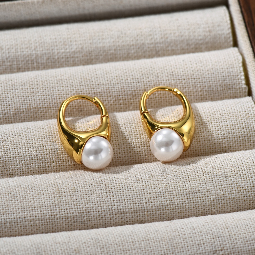 EA Ins Style French Retro Copper Plating 18K Real Gold Inlaid Pearl Ear Clip